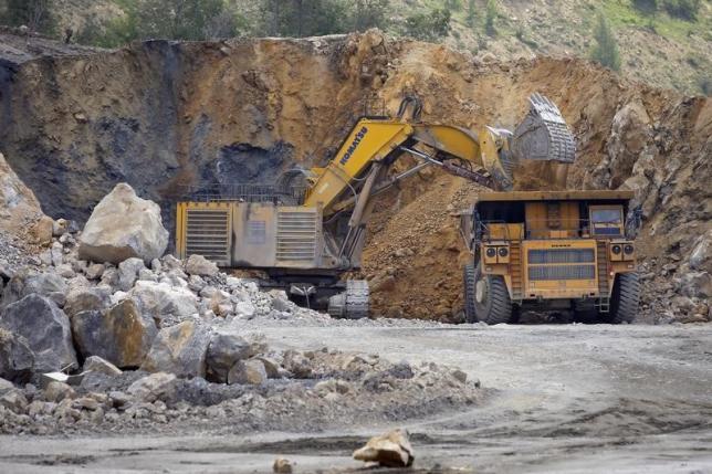 圖為塞爾維亞一處露天銅礦,一臺卡車正在裝載銅礦石。