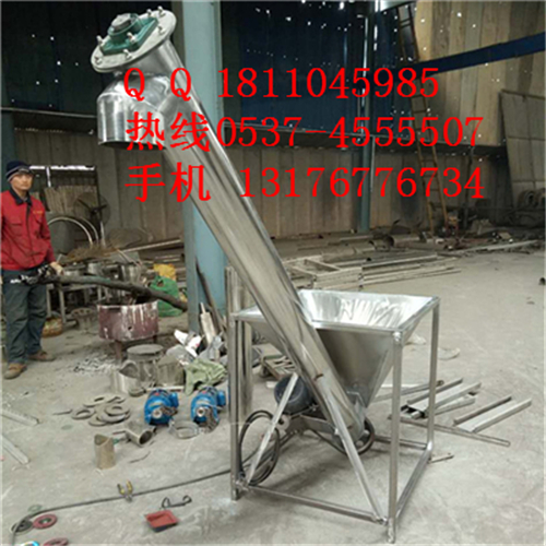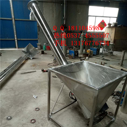 螺旋提升機產(chǎn)品概述 該機適用于食品、醫(yī)藥、化工、塑料等行業(yè)的粉粒狀物料的輸送??梢耘c我司包裝機配套實現(xiàn)料位跟蹤自動供料,也可單獨在其它場合使用。除電機、軸承、機架外其余為不銹鋼制成??呻S意移動,在水平、傾斜、垂直等位置均能連續(xù)輸送,它具有良好的密封性,無粉塵泄漏??芍苯优c其配套的設(shè)備連接固定,不需要地基基礎(chǔ),充分利用廠房空間技術(shù)特點1、本機屬非基礎(chǔ)固定式,由驅(qū)動電機、減速箱、外殼管、螺旋體依次相連,結(jié)合為整體。2、進出料口可根據(jù)工作現(xiàn)場情況制成所需要的傾斜角度,并與其它配套設(shè)備連接固定。3、該機采用盤形鋼帶軋制而成的整體連接葉片,其螺旋面精度高,內(nèi)孔外徑螺旋距尺寸準(zhǔn)確。4、可以加裝感應(yīng)裝置,自動控制配套設(shè)備的料箱的料位,提升自動化水平。5外形尺寸:具體根據(jù)工程需要來確定。 為能夠便于清理殘料設(shè)計成:螺旋可以反轉(zhuǎn)排料、料管下端有閘門放料、整條螺旋無需工具即可方便卸、裝、清洗等。