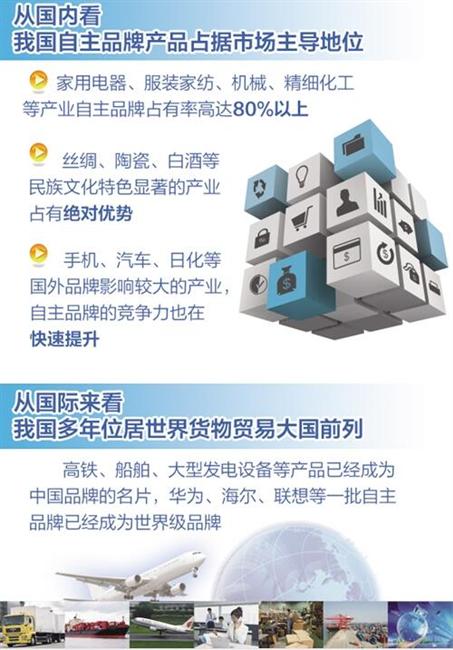 從國際上來看,我國多年位居世界貨物貿(mào)易大國前列,體現(xiàn)出中國產(chǎn)品國際競爭力不斷提升。高鐵、船舶、大型發(fā)電設備等產(chǎn)品已經(jīng)成為中國品牌的名片,華為、海爾、聯(lián)想等一批自主品牌也成為世界級品牌,越來越多的企業(yè)正在實現(xiàn)從貼牌到創(chuàng)建自主品牌的轉(zhuǎn)變。