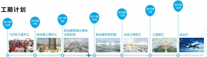 航站區(qū)工程:2015年9月26日開工;2017年3月16日,航站樓混凝土結(jié)構(gòu)封頂,共澆筑混凝土166萬立方米;2017年6月30日,航站樓鋼網(wǎng)架結(jié)構(gòu)順利提升合攏;2017年8月30日,綜合交通中心主體工程實(shí)現(xiàn)全面封頂。目前,航站樓正在進(jìn)行屋面和玻璃幕墻安裝,計(jì)劃于年底實(shí)現(xiàn)封頂封圍,進(jìn)入內(nèi)部精裝修、機(jī)電設(shè)備安裝等工作階段。