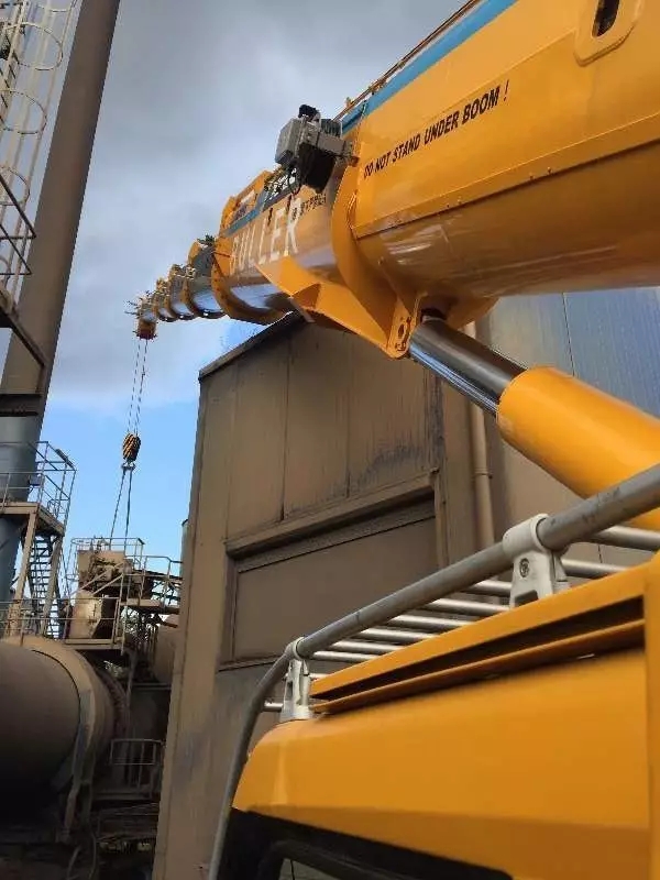 最極限的一次吊裝,在距離工廠監(jiān)控室屋頂上方不到5公分成功完成,這也是徐工臂架系統(tǒng)的穩(wěn)定性和微動性最好的證明!