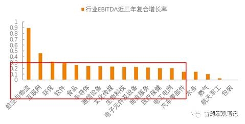 基于此,我們用企業(yè)折舊、攤銷和利息前的利潤(EBITDA)衡量企業(yè)的盈利能力,對(duì)高資本開支(CAPEX)行業(yè)的EBITDA復(fù)合增長率進(jìn)行排序,篩選出復(fù)合增長率大于14%的行業(yè)。