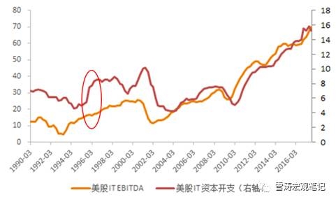 圖5:美股IT EBITDA在2002年左右開始加速趕上CAPEX支出,投資回報(bào)率提高