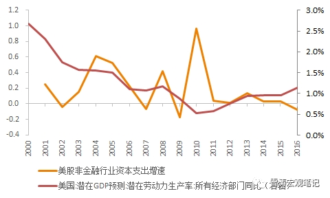 長期看,企業(yè)家總會(huì)把錢投到勞動(dòng)生產(chǎn)率更高的產(chǎn)業(yè)中,而產(chǎn)業(yè)是勞動(dòng)生產(chǎn)率的載體。所以,不管是中國還是美國,企業(yè)資本開支和勞動(dòng)生產(chǎn)率(labor productivity)都是高度相關(guān)的。