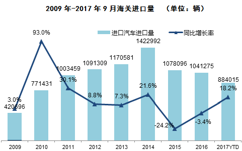 2017年進口車終端銷售弱勢復蘇,新能源汽車進口量增大,平行進口車市場規(guī)模進一步擴大