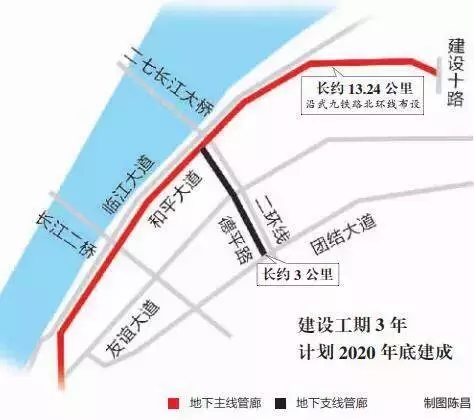 項目概況:工程主要沿武九鐵路北環(huán)線布設,包括新建16.24公里地下綜合管廊、沿線路口鐵路橋梁拆除、路口改造及續(xù)建建設十路540米道路,建設工期3年,計劃2020年底建成。
