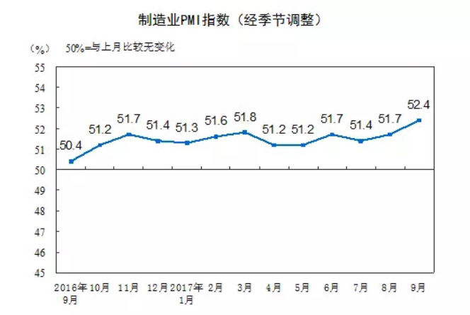 中國國家統(tǒng)計局9月30日公布,9月制造業(yè)采購經(jīng)理人指數(shù)(PMI)為52.4,比8月上升0.7,連續(xù)2個月上升,創(chuàng)下自2012年5月以來的最高,反映出中國制造業(yè)擴(kuò)張步伐加快。而以新能源汽車、機(jī)器人、增材制造、醫(yī)療設(shè)備、高鐵、電力裝備、船舶、無人機(jī)等為代表的高端制造業(yè)突飛猛進(jìn),則進(jìn)一步體現(xiàn)了中國制造目前的跨越式發(fā)展。