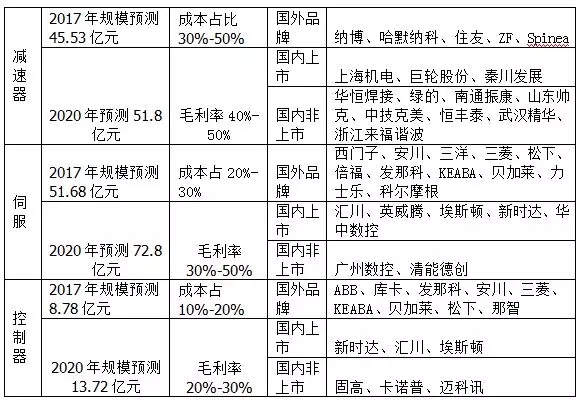 表1三大核心零部件規(guī)模、成本及品牌企業(yè)的對比