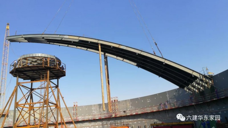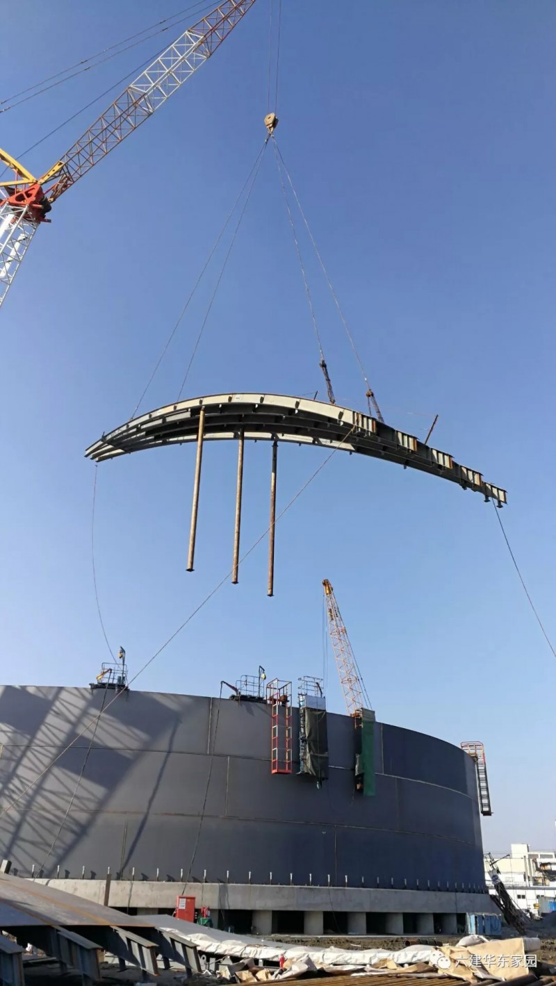 1月10日,伴隨著260噸履帶吊車的轟鳴聲,中油六建華東分公司江陰LNG項目部T-1201儲罐拱頂塊第一塊吊裝成功,為下一步拱頂組裝得以順利實施創(chuàng)造有利條件。