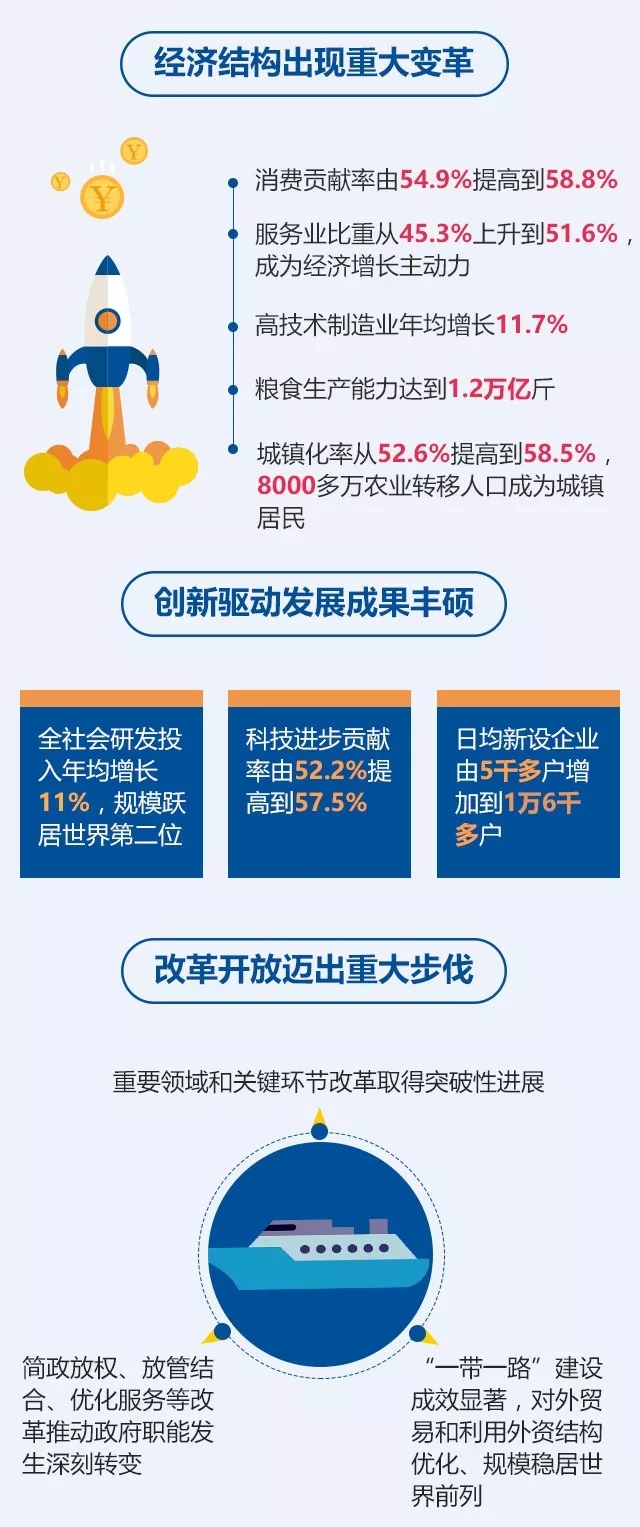 高速鐵路運(yùn)營(yíng)里程從9000多公里增加到2萬(wàn)5千公里、占世界三分之二,高速公路里程從9.6萬(wàn)公里增加到13.6萬(wàn)公里,新建改建農(nóng)村公路127萬(wàn)公里,新建民航機(jī)場(chǎng)46個(gè)。