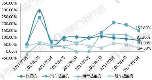 圖表1:2017年1-10月塔吊機械主要產品銷量月度同比增速變化(單位:%)