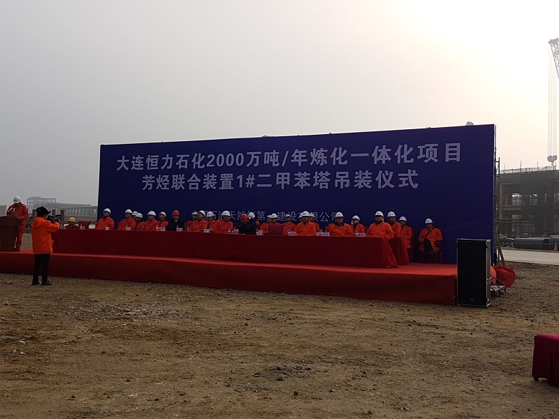 2018年3月19日上午,大連恒力石化2000萬噸/年煉化一體化項目芳烴聯(lián)合裝置1#二甲苯塔吊裝正式啟動。