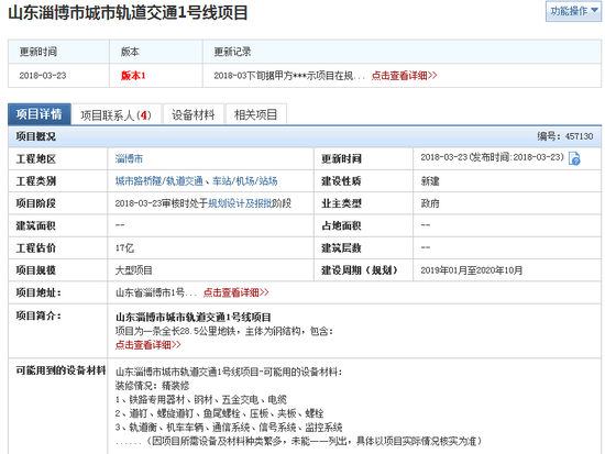 信息顯示淄博市軌道交通1號(hào)線項(xiàng)目為一條全長(zhǎng)28.5千米地鐵,連接桓臺(tái)至淄博火車站。建設(shè)周期(規(guī)劃)2019年1月至2020年10月。