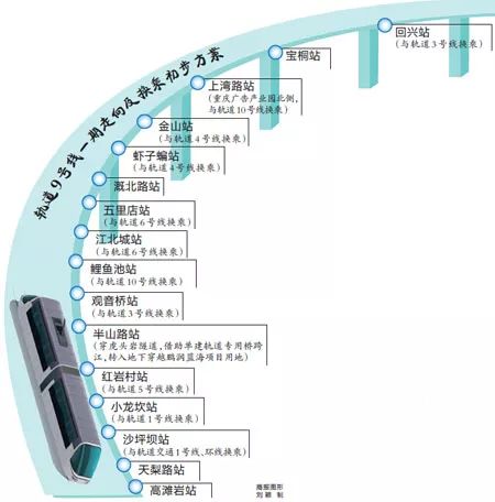 軌道交通9號(hào)線一期工程,從沙坪壩高灘巖至渝北回興,全長(zhǎng)約32公里,貫通沙坪壩區(qū)、渝中區(qū)、江北區(qū)和渝北區(qū),經(jīng)過沙坪壩組團(tuán)、化龍橋、觀音橋組團(tuán)、江北城、寸灘和回興片區(qū)等多個(gè)區(qū)域。建成通車后,從高灘巖至回興,全程運(yùn)行時(shí)間不到1小時(shí)。預(yù)計(jì)2020年建成通車。