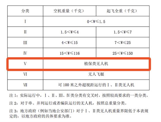 結(jié)合上述《運行規(guī)定》,為了進(jìn)一步規(guī)范無人機(jī)駕駛員管理,2016年7月11日,飛標(biāo)司修訂了《民用無人機(jī)駕駛員管理規(guī)定》(AC-61-FS-2016-20R1),修訂的主要內(nèi)容包括重新調(diào)整無人機(jī)分類和定義,新增管理機(jī)構(gòu)管理備案制度,取消部分運行要求。其中無人機(jī)分類也同樣將植保機(jī)作為第五類單獨分類管理。