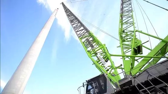 ▲中聯(lián)重科ZCC8800W型履帶起重機風電吊裝施工