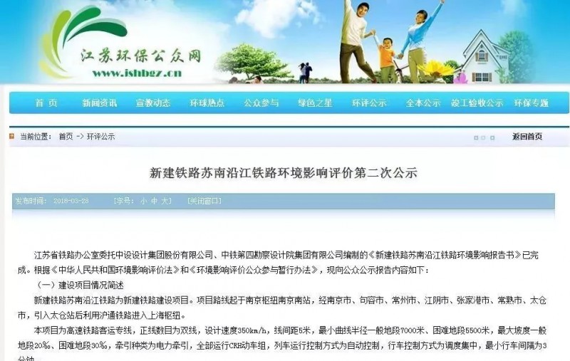 新建蘇南沿江鐵路環(huán)境影響評價第二次公示
