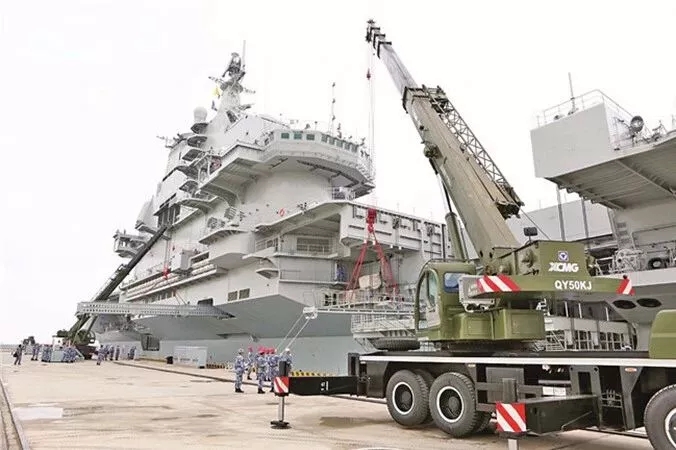 據(jù)相關(guān)媒體報(bào)道,近日,中國(guó)首艘自主建造的001A航母,正在進(jìn)行最后的收尾工作,甲板上已經(jīng)開(kāi)始全面清理,此前密集的施工腳手架已經(jīng)拆除,即將涉水海試!而更引人矚目的是,7臺(tái)徐工起重機(jī)出現(xiàn)在飛行甲板上!