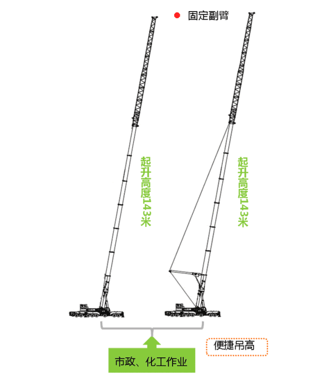 多種臂架組合配置、實現(xiàn)多工況吊載需求