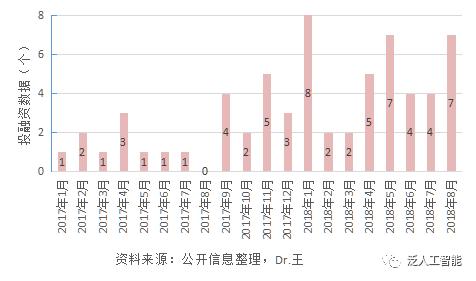 從圖2,我們可以看到2017年以來機器人行業(yè)公司投融資數(shù)量月度變化趨勢。非常明顯,機器人行業(yè)從2017年初以來,得到風(fēng)險投資支持的創(chuàng)業(yè)公司數(shù)量越來越多,形勢不錯。