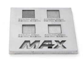(2)金屬深雕:金屬深雕一般使用焦距(焦深)短的場鏡,當(dāng)高功率深雕時,由于熱透鏡效應(yīng),材料處能量密度迅速下降,造成金屬打不深。由于光學(xué)元件中心比邊緣膨脹大,出現(xiàn)中心淺,四周深現(xiàn)象(深度不一致)。