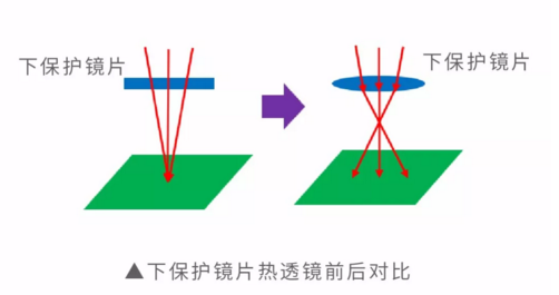 功率越高、加工高反材料,光學(xué)元件受熱膨脹越迅速,熱透鏡越明顯;產(chǎn)生熱透鏡效應(yīng)時,光學(xué)元件受熱膨脹,出現(xiàn)聚焦能力變強,聚焦光斑尺寸變小,焦距和焦深變短現(xiàn)象。