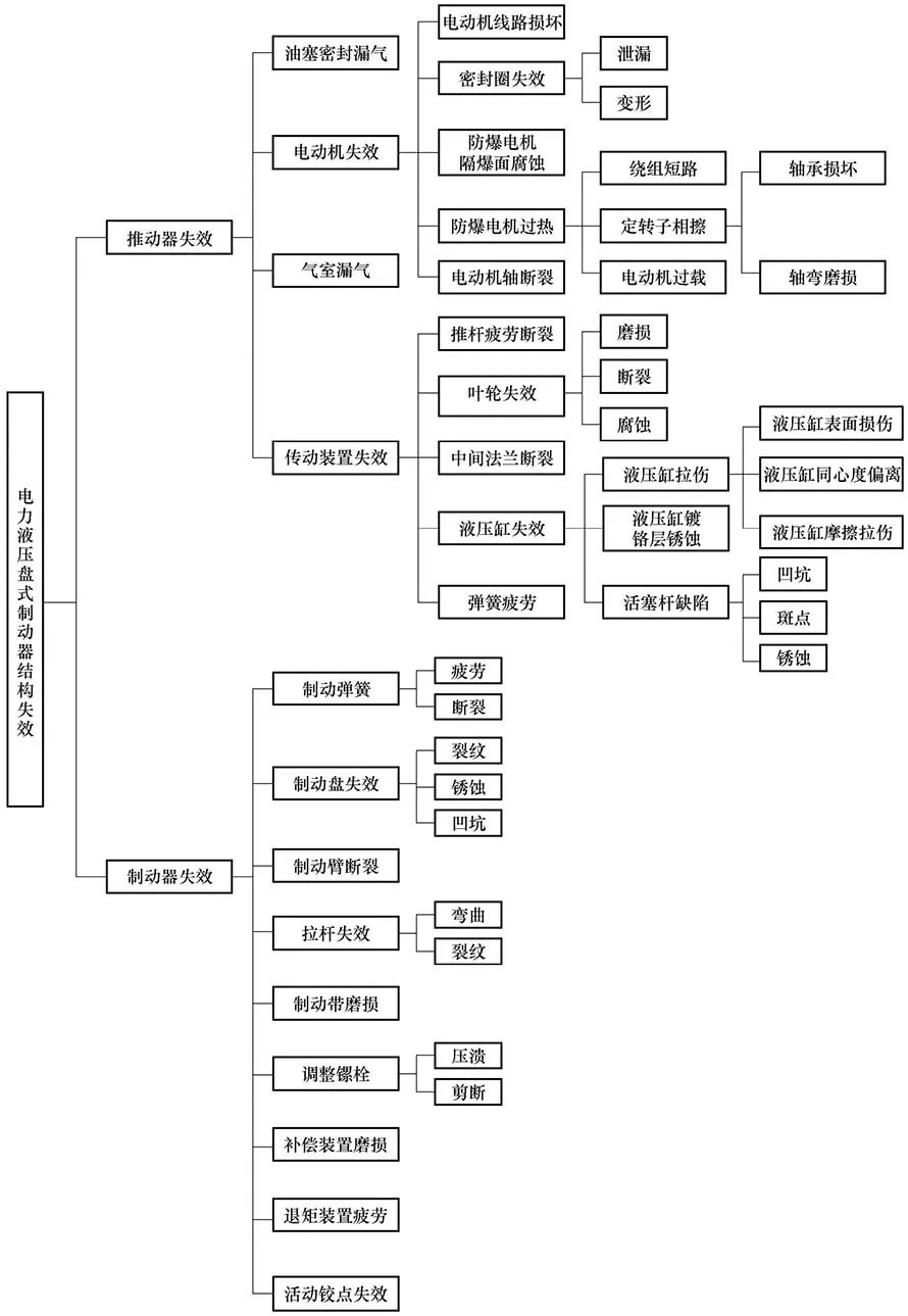 圖1 電力液壓盤式制動器典型結(jié)構(gòu)失效層次圖