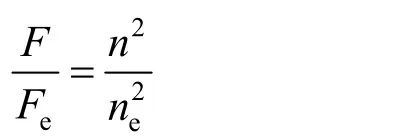 由電力液壓盤式制動器構(gòu)造可知,泵的壓力與轉(zhuǎn)速、轉(zhuǎn)速與功率都是二次方的關(guān)系,而轉(zhuǎn)速與流量是正比例關(guān)系,故推動器產(chǎn)生的推力F與制動器電動機轉(zhuǎn)速n的二次方成正比關(guān)系,如圖3所示。