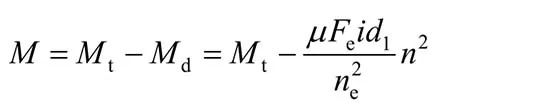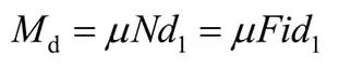 在制動器工作時,可以將制動轉(zhuǎn)矩看成由兩部分構(gòu)成,一部分是制動彈簧預緊力產(chǎn)生的制動轉(zhuǎn)矩,用Mt來表示,其值為正;另外一部分是推動器的推力產(chǎn)生的制動轉(zhuǎn)矩,方向與Mt相反,用Md來表示,其值為正。則制動轉(zhuǎn)距M可表示為