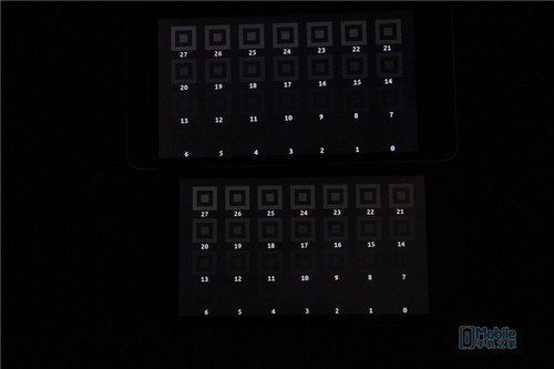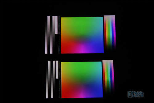 聯(lián)想樂檬K3對(duì)比紅米2(下)兩塊屏幕在整體過(guò)度方面表現(xiàn)也比較類似,整體過(guò)渡柔和,在藍(lán)紫過(guò)度方面表現(xiàn)過(guò)于生硬。過(guò)渡帶方面紅米2向白色過(guò)度相對(duì)于聯(lián)想樂檬K3更好;聯(lián)想樂檬K3則在向黑色過(guò)渡方面比紅米2更加自然。