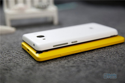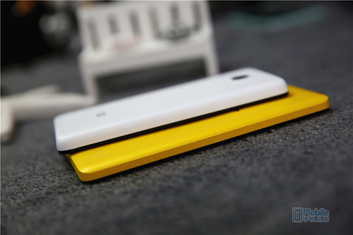 機(jī)身背面聯(lián)想樂檬K3采用了檸檬黃色處理,小編手上這臺(tái)紅米2則為白色設(shè)計(jì),相對(duì)而言檸檬黃更活潑亮眼一些。