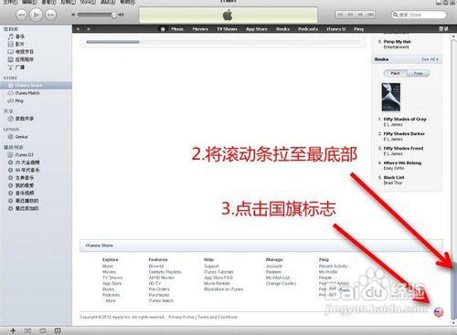 第二步.將iTunes右側(cè)滾動條拉至最底部,然后會看到一個國家的國旗標志,點擊
